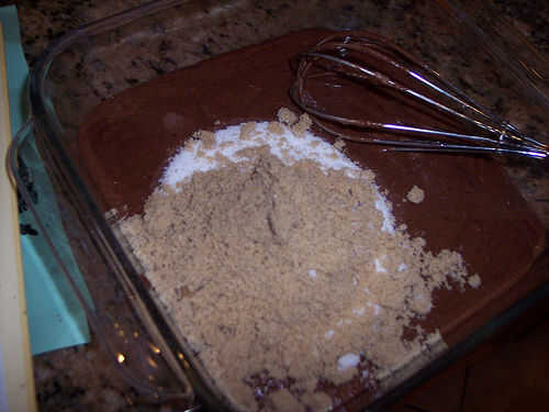 Después de haber mezclado los ingredientes, Espolvoree la mezcla uniformemente sobre la masa,