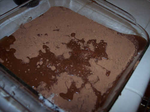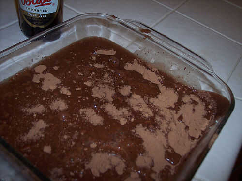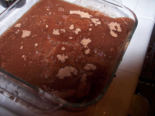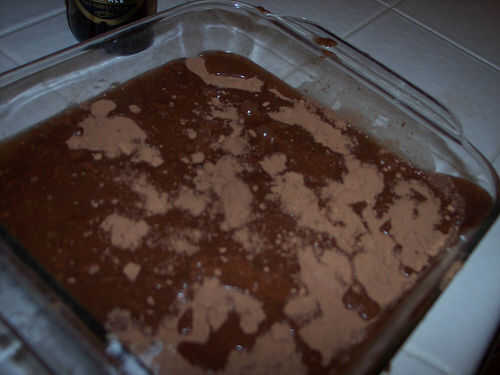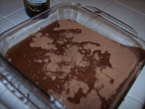 a continuación, vierta 1 1/4 tazas de agua caliente sobre la mezcla,