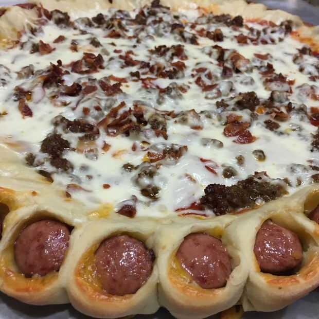 Esta pizza puede ser demasiado extrema para algunos pero déjame ya, Dile me sorprendió en lo delicioso que era. Sí, no es saludable. No tiene sentido que probar absolutamente sorprendente. Es ideal para una ocasión especial pero sé que un montón de chicos que esto ordenaría un menú todos los días. La corteza se tira muy bien así puedes comer por separado y también mantiene unida para que pueda ir en él la forma moda ol ' buena.