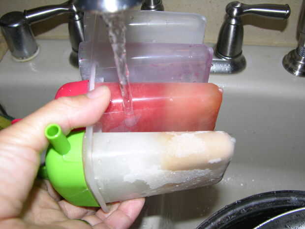 Desmoldar el hielo pop ejecutando un chorro de agua caliente en el exterior del molde (Asegúrese de que el hielo pop interior no se moje) durante varios segundos y retire el pop de hielo.