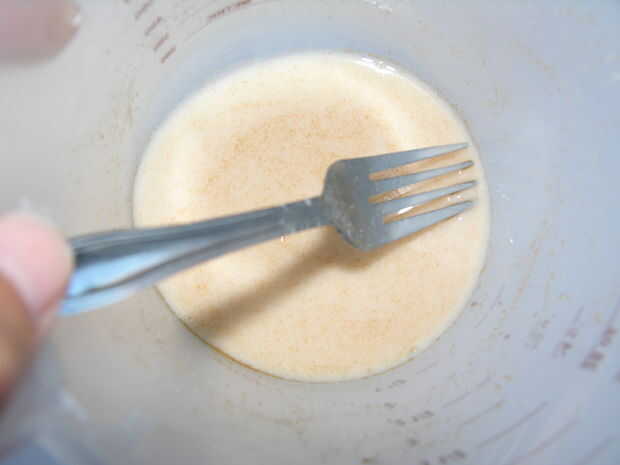 Una vez que haya drenado el agua de arroz, combinarlo con el almíbar, yogurt griego y canela de tierra. Usted querrá esta mezcla cuidadosamente, para que todo Ligue bien y la canela y yogurt no separan al punto de congelación. Una batidora eléctrica o licuadora es muy útil aquí, pero un tenedor y codo grasa conseguirá el trabajo hecho. Supongo que mi grasa de codo no fue suficiente. Claramente la mezcla se separa al punto de congelación. ¡ Oh bien.