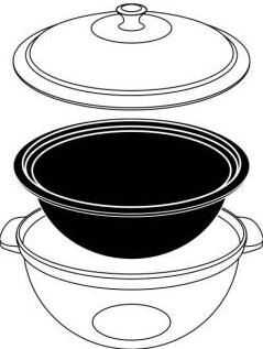 Para aquellos de ustedes que no están familiarizados con el HotPot™ legendario, el ensamble de la caja original compuesta por una 5 litros negro esmaltado acero olla, apoyada por su borde dentro de un cuenco de cristal templado cubierto, claro. Hay un de media pulgada de espacio de aire entre el pote y el tazón de fuente. El calor retenido en el interior del recipiente de vidrio crea un efecto de "invernadero" de la miniatura y mantiene las temperaturas de cocción.