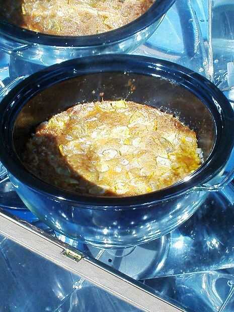 La cazuela comenzó a cocinar a fuego lento en aproximadamente 13:00 y comenzó a dorarse en los bordes en 14:00. De 15:00, la parte superior de la cazuela se dore ligeramente. Muestras cada hora, la cazuela era realmente totalmente cocida por 14:00. Y, a diferencia de la receta de sopa de pollo, éste era absolutamente delicioso. Continué cocinar la cazuela como claramente estaba emocionado sobre la recién descubierta capacidad doradora de este horno solar, con esta receta por lo menos. El volumen de la cazuela terminada era considerablemente menos de un galón, debido a la evaporación, así como mi muestreo incontrolada.