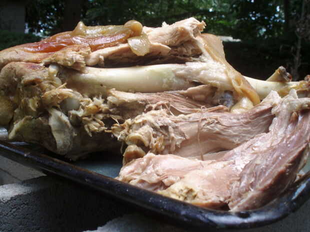 Para el día dos es una cocción lenta y carne de cerdo es el rey. Obtener una gran gran paleta, con la piel. Utilizo el hombro entero; debe pesar cerca de 20 libras. Podría hacerlo con menos, pero al parecer como un montón de trabajo para un producto poco. Este horno es probablemente capaz de cocinar dos o tres hombros todo si querías. No he probado todavía.