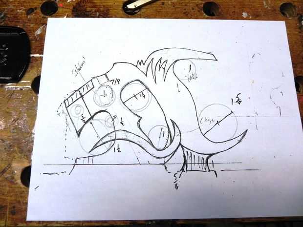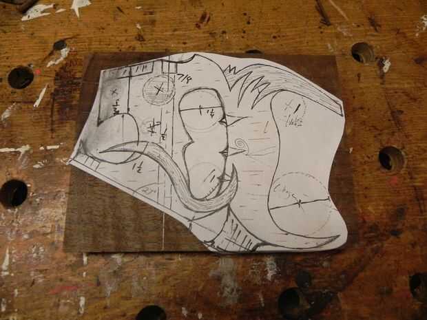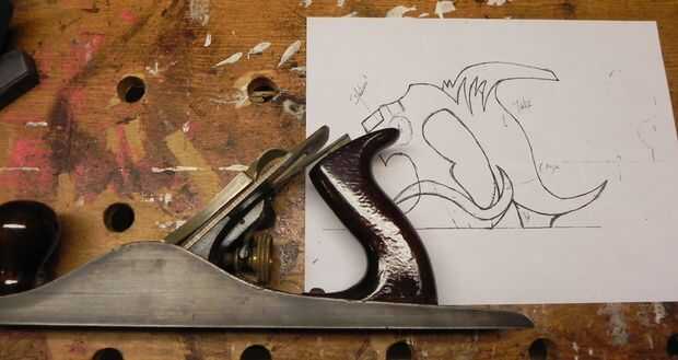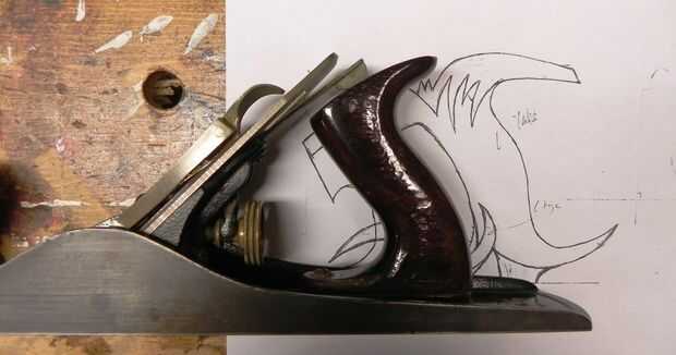 Para la parte trasera, empecé con la plantilla para una manija de Stanley #5 de Lee Valley y un cuadro dibujado a mano de la manija de mi backsaw. Me fusionaron en Powerpoint y conectar las líneas en una copia impresa.