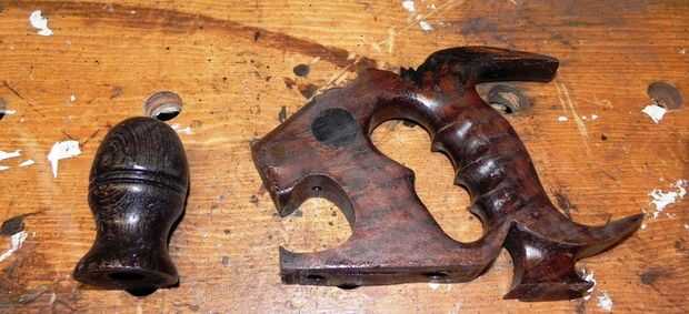 Montaje es sencillo. Utilice los tres tornillos para volver a colocar las manijas de madera y apretar. El pequeño tornillo secundario en la parte trasera ahora es oscurecido por la madera por encima pero pude comenzar con mis dedos y terminar con un destornillador largo en un ángulo.