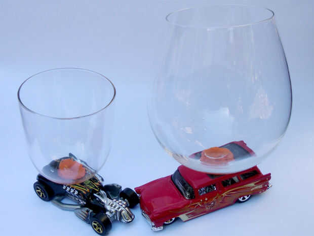 Copas de vino viejo se combinan con coches de juguete y crear tu propio hot-rod cristalería!