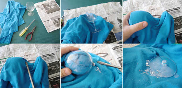 El objetivo es separar el recipiente de la madre. Empezar por relleno de paño interior de vidrio para actuar como un refuerzo contra el impacto, luego envolver el tallo con tela más para que fragmentos de vidrio no asoman a tus ojos.
