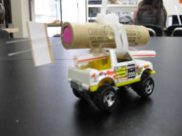 El propósito de este laboratorio fue a ver a qué velocidad en km/h que un coche caliente de las ruedas podría viajar si hemos añadido un motor de cohete a él. Pasamos por muchos obstáculos a lo largo del laboratorio como los photogates no recoger los