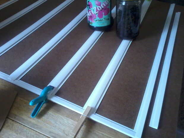 Medida de la placa. Corte y ajuste "cap/borde" en seco alrededor de los bordes de la placa... Pegamento y apretar hacia abajo, dejar secar.