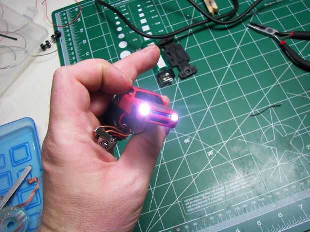 Por último, soldar los cables de extensión para los LEDs. Asegúrese de que no son un cortocircuito les hacia fuera e incluso que un dap de pegamento caliente no está fuera de lugar. Ahora que es todo cableado correctamente por primera vez, pruebe el interruptor para ver si funciona.