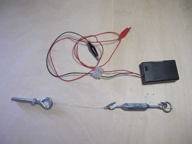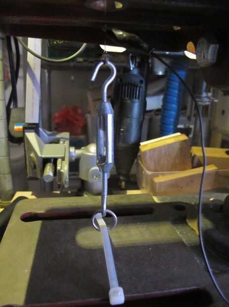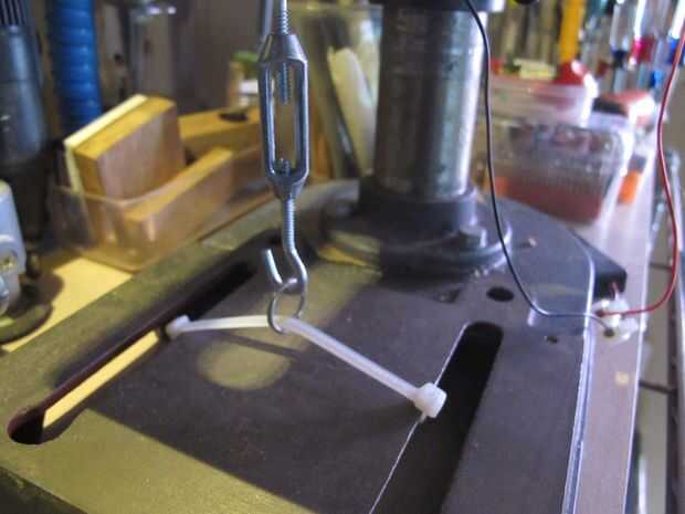 Aunque utilizo algunos tornillos de metal, usted puede simplemente con una varilla con un orificio para sujetar el alambre caliente.