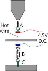 Parte "B" también se puede sustituir por un resorte o sólo negligencia, porque la tensión del alambre caliente puede realmente ajustado por el lazo de nylon.