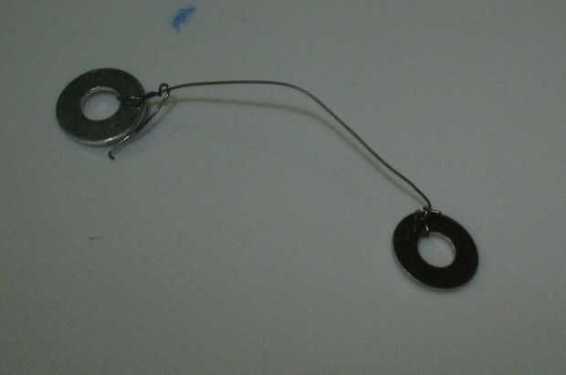 Una vez que tenga la longitud adecuada averiguada. Añada una arandela a ambos extremos de la misma, torciendo el alambre para que siga conectada (como en la foto)