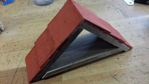 5. hacer de la pieza delgada de madera tejas. Y pintar en el color que desee.