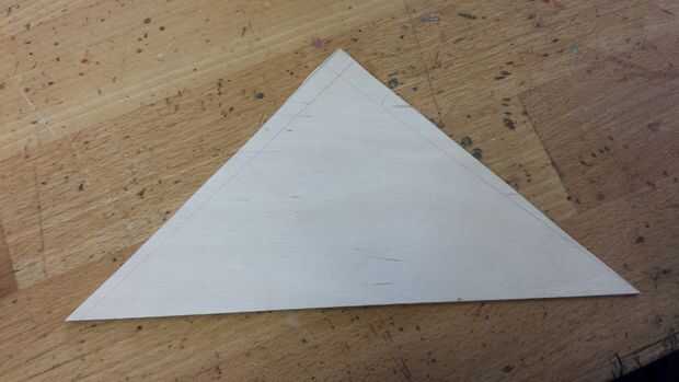 7. dibuje un triángulo en un trozo de madera contrachapada de 3 mm.