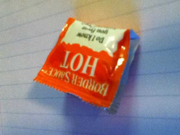 Siguiente tomar los paquetes hotsauce y doblar por la mitad.