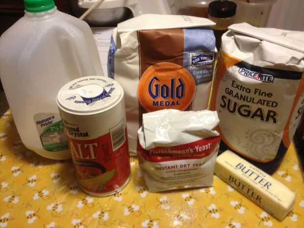 1. mezclar el agua tibia, leche, azúcar, sal, levadura (agua caliente y leche fría hacer sesión caliente para unos 100o F