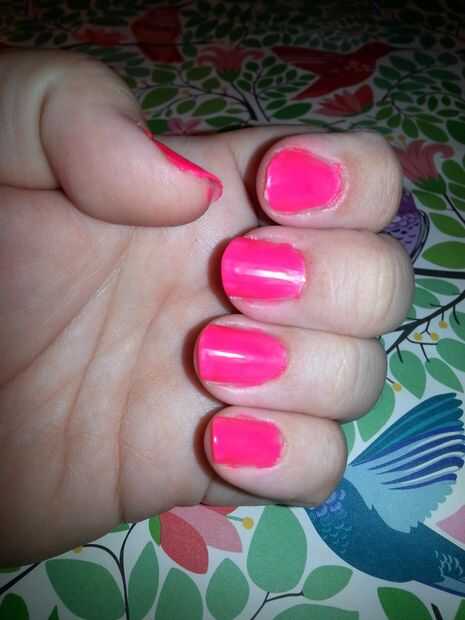 Comience con uñas en forma limpiamos y añadir una capa de base clara. Dejar secar y agregar una capa de color de rosa caliente.