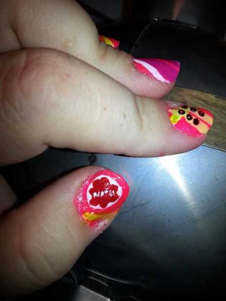 Bono: color en las áreas de color de rosa caliente con esmalte de brillo un poco, sólo asegúrese de no cubrir cualquier diseño.