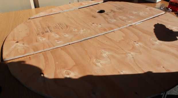 1. cortar un círculo que mide 117 cm de diámetro. (Utilizamos tres piezas de madera juntos, pero puede utilizar una cantidad diferente de piezas de madera)
