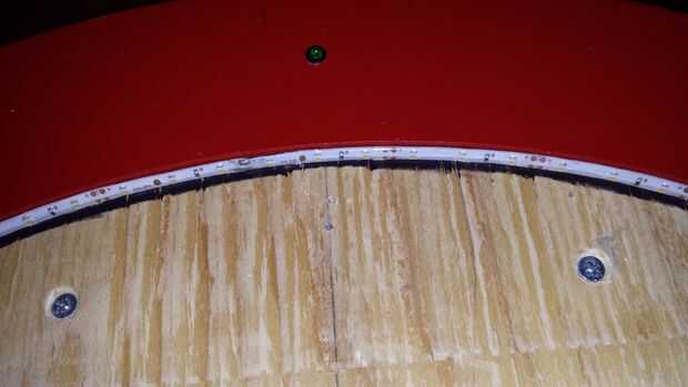 - Dentro de esta ranura, coloque una tira de luces de LED de alto brillo que puede activar cuando la unidad se enciende. Las luces todos cara hacia el interior para iluminar la superficie interna de la HoverDisk.