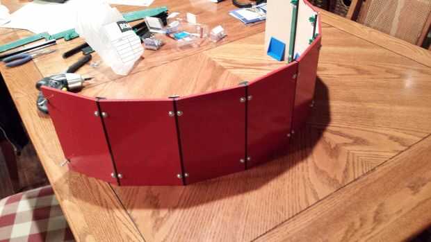 Para hacer que aparece que el HoverDisk es realmente rondando, necesita cubrir las ruedas y ruedas. Lo hice mediante la construcción de una cubierta alrededor de la unidad entera que escondía todo. Hay muchas maneras de hacer esto pero opté por usar cuarto de pulgada MDF. Yo saqué mis planes en el papel y diseñó los soportes usando 123D (software de la impresora 3D) y 3D impreso les de modo que pude perno todas las piezas separadas de juntos. La Sábana Santa se detiene sobre una media pulgada por encima del piso en caso de que el HoverDisk tiene que pasar sobre un bache pequeño o dos.