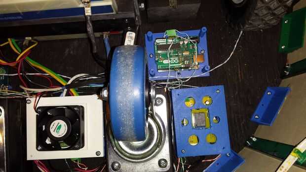 - 2 Arduinos - uno controla los motores y se controla las luces, relés y ventilador.