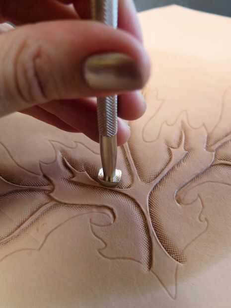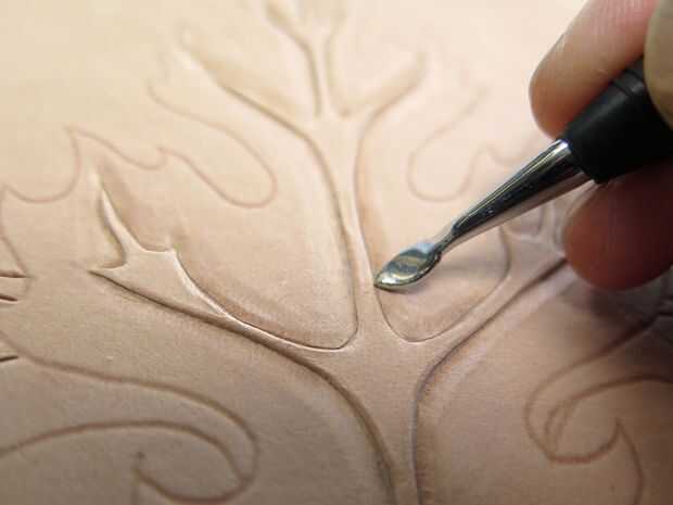 Una vez que había descrito mi venas de la hoja con el cuchillo del eslabón giratorio, usé dos herramientas adicionales para textura del diseño de la hoja.