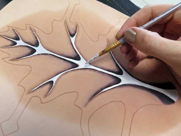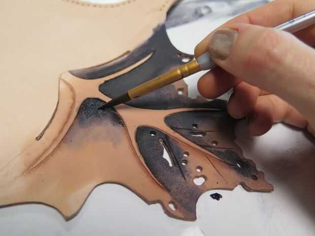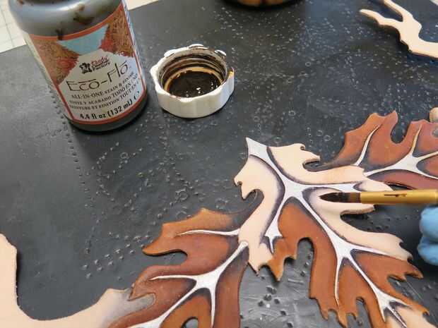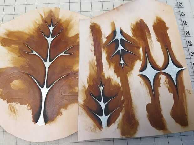 He utilizado tres tipos diferentes de tinte del cuero para agregar color a mis hojas: una bellota, un Waterstain negro y un Color Plata de Cova café mancha All-In-One y acabado.