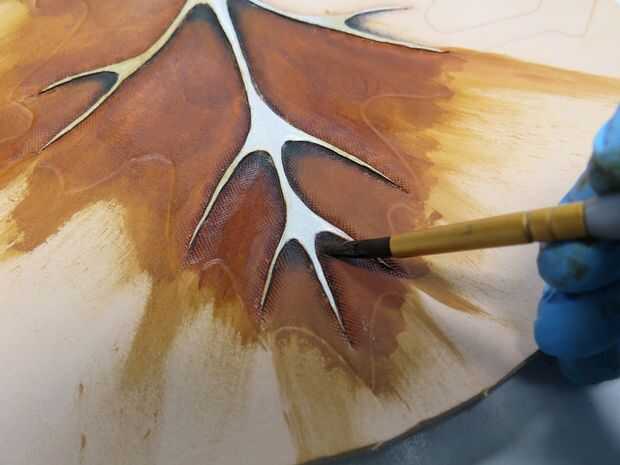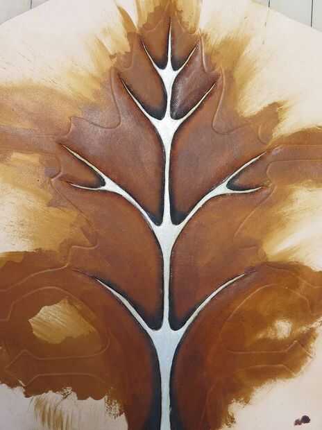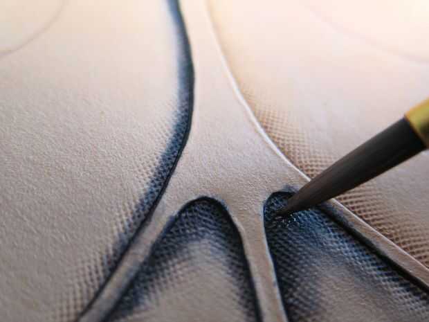 Luego utilicé un pincel más pequeño para aplicar el Color Plata de Cova en las venas levantadas de cada hoja.