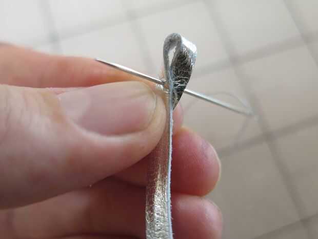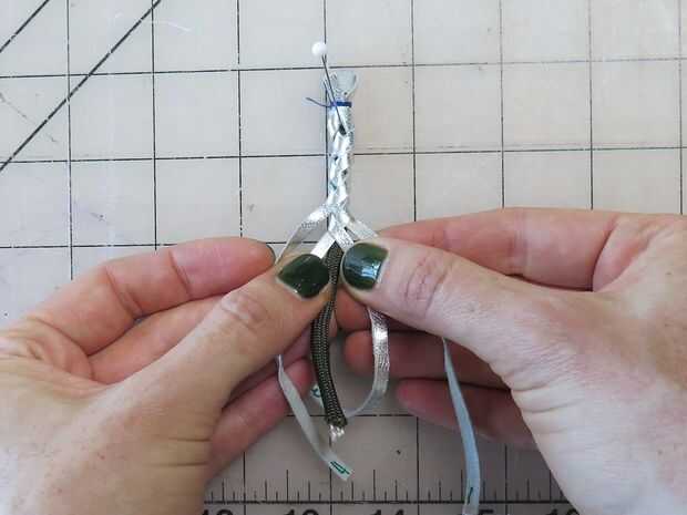 Usé dos tipos diferentes de trenzas en este diseño, ambas hechas con encaje de plata buckstitch de Tandy.