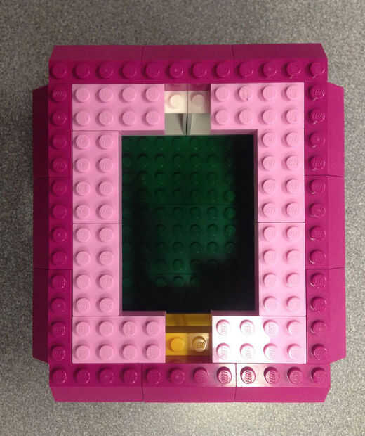 Rellene el espacio más grande con dos bloques rosa perpendiculares al frente de la casa.