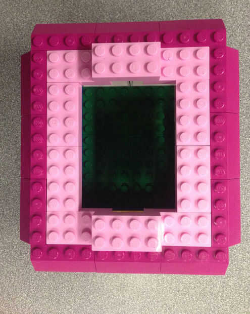 Coloque un bloque rosa sobre cada una de las lagunas perpendicular a la puerta.