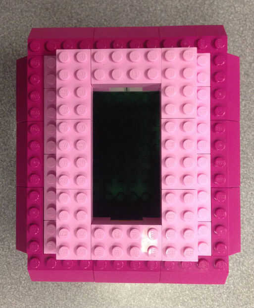 Alinear 3 cuadras rosados por el interior borde de la perpendicular de bloques en línea con los bloques paralelos.