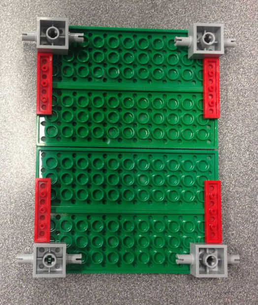 Colocar una plataforma roja en el borde de la plataforma verde junto a cada eje.
