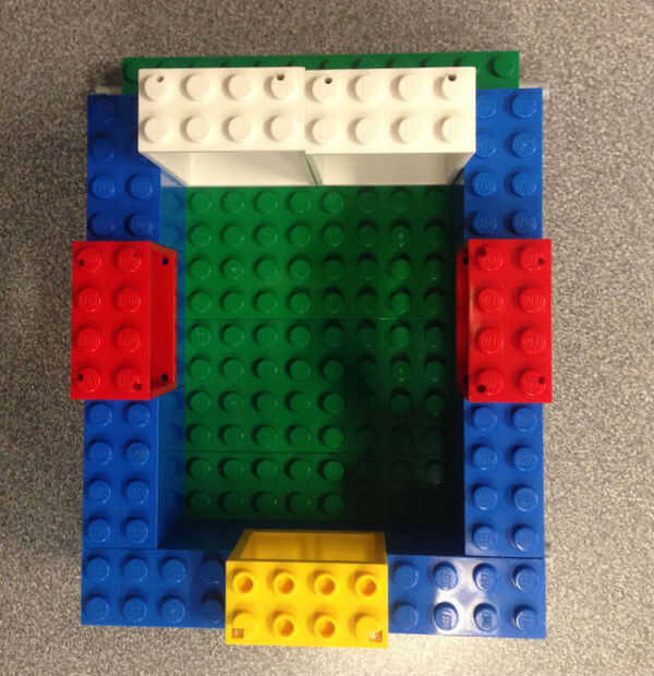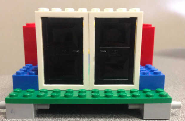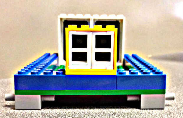 A continuación, coloque las dos ventanas de rojo en la parte superior el segundo bloque detrás de las puertas.
