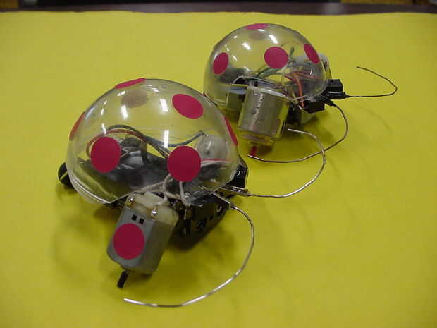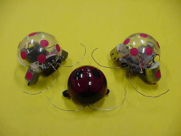 Uno de mis muchos robots fue el robot escarabajo, un simple robot que puede evitar los obstáculos en el piso sin ningún chip de silicio. (la mariquita roja, la segunda foto, es mi primer beetlerobot)