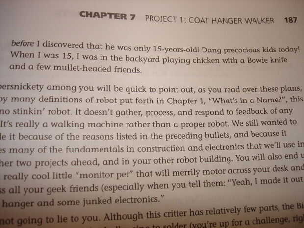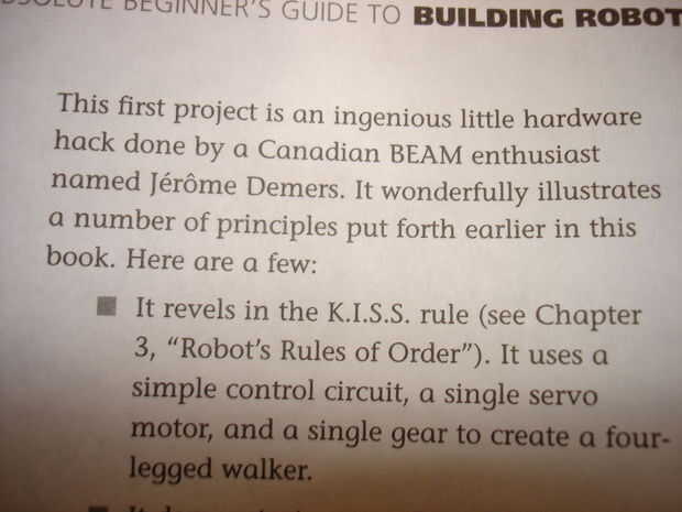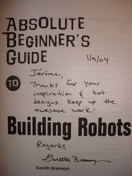 PS - Compruebe hacia fuera el libro de Gareth Branwyn, hice un un caminante motor e hizo un capítulo completo con mi robot!!!! Me envió la llamada del libro "Guía del principiante absoluto a la construcción de robots" un gran libro!