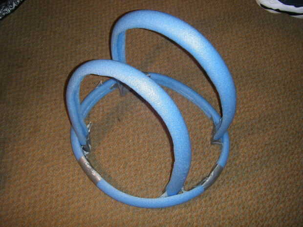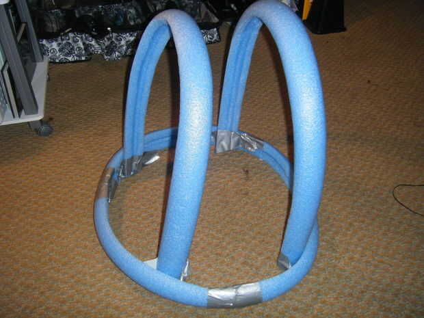 Paso más importante del traje entero... PEGAMENTO CALIENTE. Sólo porque sin pegamento caliente nada permanece juntos. Sólo diré que cuando digo pegamento caliente, me refiero a un montón y un montón de pegamento caliente y horas y horas de pegar justo porque cada área tiene que ser extremadamente gruesas. El más grueso el pegamento más tiempo debe mantener los tallarines en su lugar y esperar a que se seque. Se trata, en definitiva, aburrido y estresante porque tienes que mantener las manos en un mismo lugar para siempre. Cortar y colocar trozos de fideos donde se necesita apoyo adicional, porque Recuerde que esta es la base del traje entero, tiene que ser firme o no hace al final. Ahora a crear el cuello, que tenía algunos problemas en el camino.