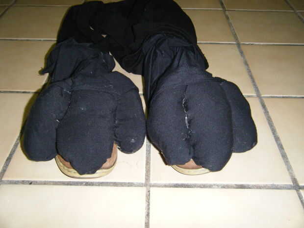 ¿No puede ser kevin si usa zapatos tenis y algunos locos pantalones derecha? Así que compré unos leggins negro elásticos y ya que mis piernas ya son largos y flacos todo lo que tenía que hacer era poner jaja en cuanto a mis pies literalmente tomé algunos tejido elástico negro y cortar las 3 piezas para crear los dedos de los pies. Yo entonces les rodó en formas redondas y pegamento caliente para que los pude rellenar con relleno de fibra de poliester. Caliente pegar derecha en los zapatos y luego tomé a tela extra y envuelto alrededor de mis tobillos. También esta había asegurado con pegamento a los lados de los zapatos y pernos de seguridad se usa para obtener el tejido para permanecer para arriba en mis polainas de crear una forma de pierna sólida y engañar los ojos.