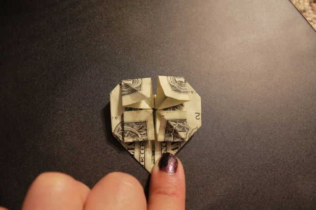 corazón SimplePaso 1: Plano dolar Un plano proyecto de ley se ve mejor pero un poco arrugada tambiénPaso 2: Doble factura por la mitad Doblar por la mitadPliegue deEspalda abierta hastaPaso 3: Doblar los bordes Doblar bordes a la línea de centroLuego