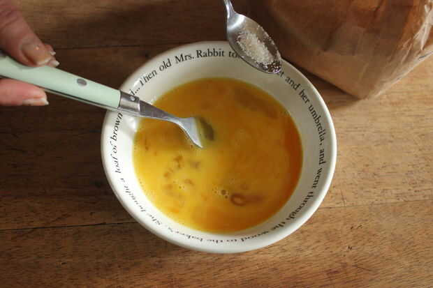Para cada uno de los tres, los huevos se deben licuar junto con un tenedor para formar una mezcla homogénea.