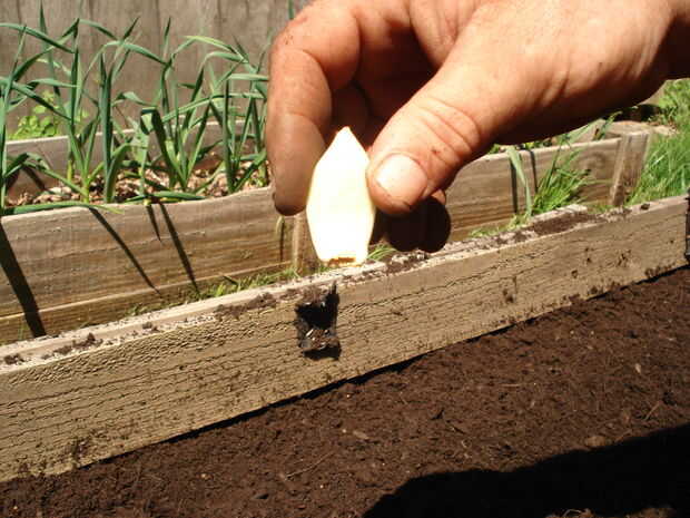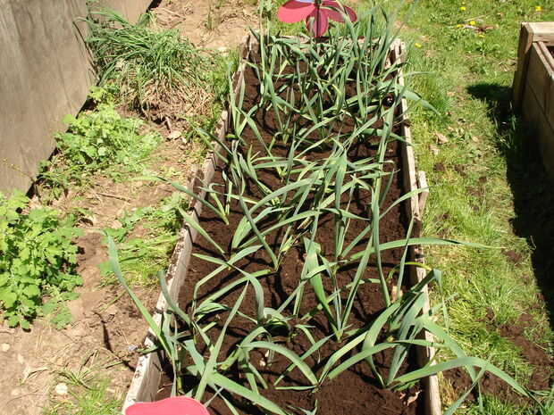 Las fotos mostradas aquí siembra el ajo son un tipo de piel plata. Plantaron hace 2 semanas. Debería estar listos a principios de septiembre.
