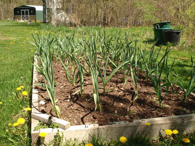 Las fotos donde el ajo los tallos son cerca de 10 pulgadas de alto se plantaron el año pasado en septiembre. Estarán listos a finales de julio...