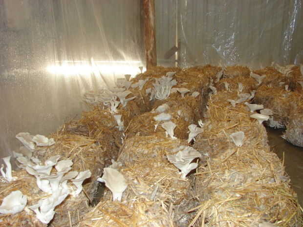 No olvide monitorear constantemente para las plagas, como moscas y ratones, como rápidamente puede arruinar una cosecha. Debe esperar tres o más cultivos, cada toma alrededor de una semana o así a madurar. Usted puede cosechar las setas en cualquier tamaño, sin embargo, una vez que un hongo ha alcanzado su tamaño completo, te darás cuenta empezará a secar, da vuelta a un color amarillento (saben genial, incluso secas). Cuando se cosecha, quitar la seta completamente, girando firmemente en su base. Después de la cosecha de algunos cultivos, lo encontramos útil para apilar los montones de paja, que parece ayudar a aumentar el rendimiento. Si encuentras tus hongos con tallos largos y pequeños, pueden no recibir suficiente luz, también altos niveles de CO2 también pueden conducir a pequeñas deformidades (permitir más aire fresco). Después de la paja deja de producir setas, puede ser alimentado al ganado o compostado.