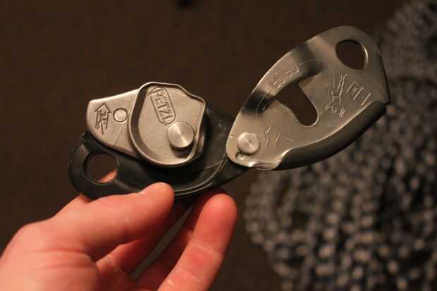 Es muy importante que hagas esto correctamente o el Grigri no protegerá el escalador durante una caída. Este paso es claramente etiquetado en el Grigri sí mismo así que si no estás seguro si lo hiciste correctamente, ve al lado del Grigri para instrucciones.