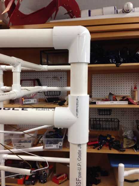 Ahora en las cuatro esquinas, insertar piezas de 4 en PVC, así como en la t en el medio.