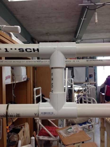 Por último, poner una conexión de en t en 4 piezas en el medio y utilizar 12 en PVC para conectar cada lado hacia la guarnición de la te.