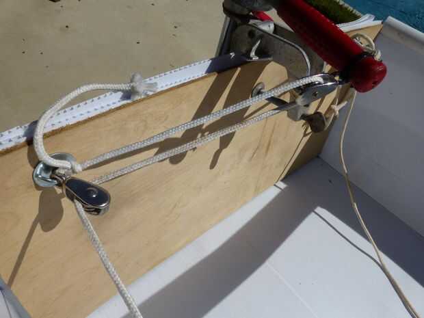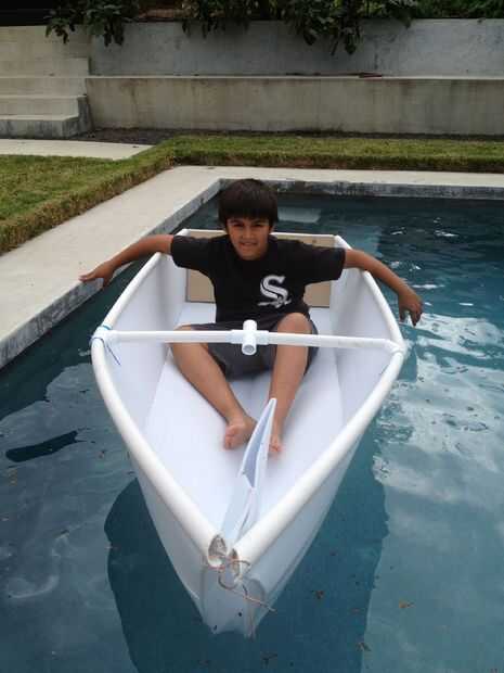 Hice un barco de coroplast. ¿Qué es coroplast? Coroplast es un material plástico que se puede doblar como cartón, pero es resistente al agua. El casco está hecho de una pieza doblada de coroplast con un pedazo de madera contrachapada para el espejo de popa (la parte plana en la parte trasera del barco). Solía PVC actúan como Falcas (piezas en el exterior que sujetan el barco) y frustrar (la media pieza transversal) para mantener juntos a los lados del barco. También hice un volante de PVC que os adjunto al motor con cadena y poleas. Compré el motor por $30 en craigslist. Es un trolling motor eléctrico, que va en la parte posterior de un barco que permite a un barco para moverse por el agua con tranquilidad. Es un barco de trabajo que cualquier persona que está debajo o alrededor de 200 libras podría montar alrededor en.